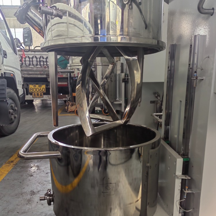 該強力行星攪拌機操作、清洗方便。生產(chǎn)完物料后,料桶直接液壓提升,方便沖洗。
