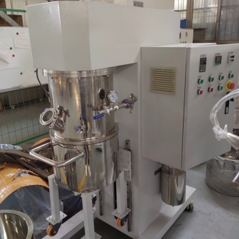 現(xiàn)階段常用的行星攪拌機(jī)通常有兩個(gè)低速檔大行星攪拌槳(通常為多斜漿葉式,大麻花式,框式),一個(gè)或2個(gè)快速大行星攪拌槳(分散化盤(pán))和刮壁槳構(gòu)成。